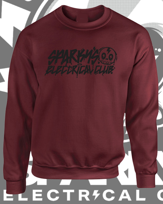SPARKYS ELECTRICAL CLUB CREW NECK JUMPER - RON BURGUNDY- GRAFFITI PRINT Printed on Gildan Heavy Cotton (271gm).