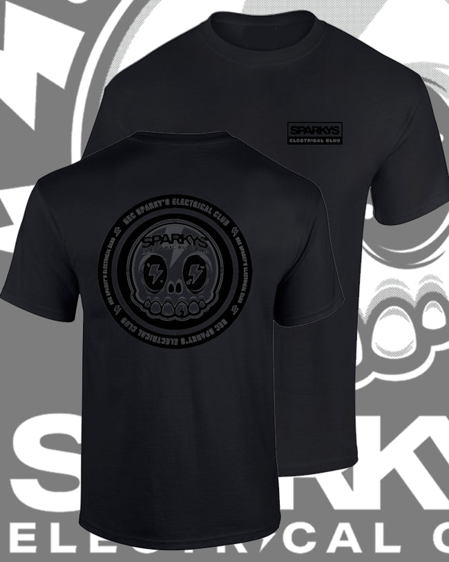 SPARKYS ELECTRICAL CLUB T-SHIRT - BLACK ON BLACK STEALTH MODE
